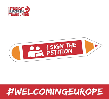 Minėtą Europos piliečių iniciatyvą dėl migracijos remia ne tik ETUC, bet ir šimtai Europos profesinių sąjungų bei pilietinės visuomenės organizacijų, kurios ragina visus piliečius pasirašyti peticiją „Mes esame svetinga Europa“. Jei ją pasirašys 1 milijonas Europos Sąjungos (ES) piliečių 7 valstybėse narėse, Europos Komisija privalės atsakyti į šiuos keliamus reikalavimus: