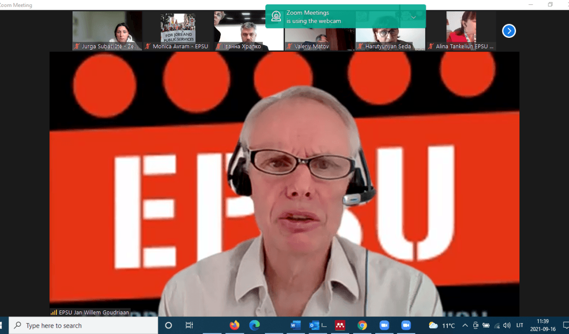 Šiandien, rugsėjo 16 d., nuotolinėmis ryšio priemonėmis vyksta Europos viešųjų paslaugų profesinių sąjungų federacijos (EPSU) Šiaurės-Rytų regiono (North East Constituency) atstovų susitikimas. Jame dalyvauja profesinių sąjungų atstovai iš Latvijos, Lietuvos, Estijos, Armėnijos, Baltarusijos, Ukrainos, Gruzijos, Lenkijos. Sveikinimo dalyviams žodį tarė EPSU generalinis sekretorius Jan Willem Goudriaan.