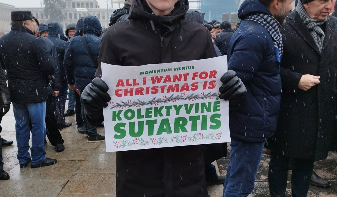 Gruodžio 9 d., 13 val., aikštėje prie Vilniaus miesto savivaldybės, vyko streikuojančių Vilniaus viešojo transporto palaikymo akcija.