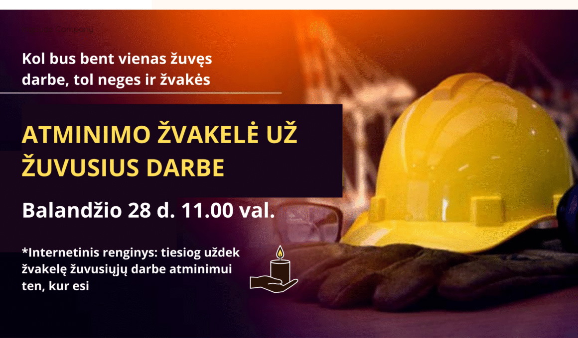 Lietuvos pramonės profesinių sąjungų federacija tęsia tradiciją, ir balandžio 28-ąją – Pasaulinę darbuotojų saugos ir sveikatos dieną – kviečia visus prisijungti prie simbolinės akcijos – uždegti žvakelę žuvusiems darbe atminti. *