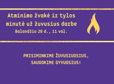 Balandžio 28 dieną minimos dvi svarbios datos – Pasaulinė darbuotojų saugos ir sveikatos bei Tarptautinė žuvusiųjų ir sužalotųjų…