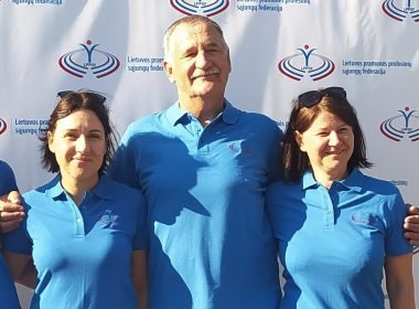 Nuotraukoje: akimirka iš 2021 m. LPPSF šeimų sporto žaidynių. Viduryje – Gediminas Kriščiūnas, dešinėje – LPPSF pirmininkė Dalia…